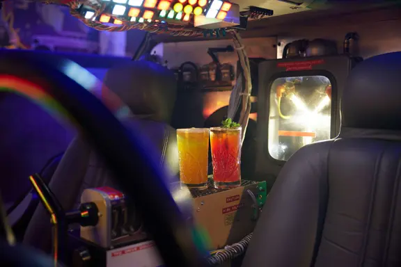 Your ride begins being transported back in time to indulge in classics like McFly’s slider burger and Mayor Goldie Wilson’s Hot Dog, before being grounded back in the present with modern tastes such as the DeLorean pulled pork burrito, E=MC2 Mac and cheese toastie and Marty’s crispy shrimp tortilla with slaw and spicy citrus sauce, before taking flight again into the future for Doc’s brownies, Biff’s apple cobbler and George’s fruit macarons.